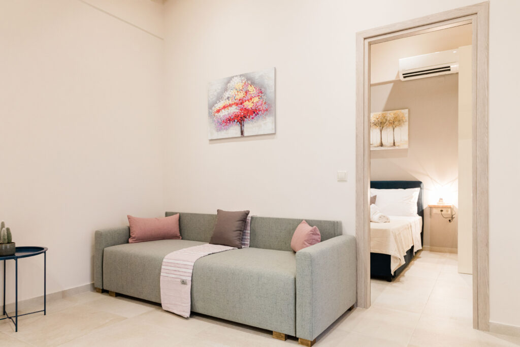 A double bed in the bedroom and a double sofa bed in the living room.30 m2. 2-4pax